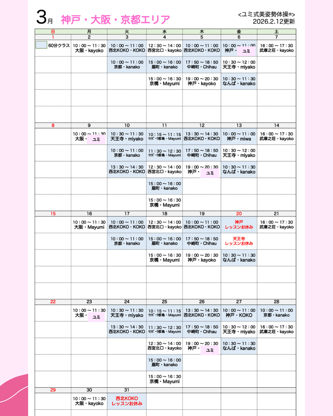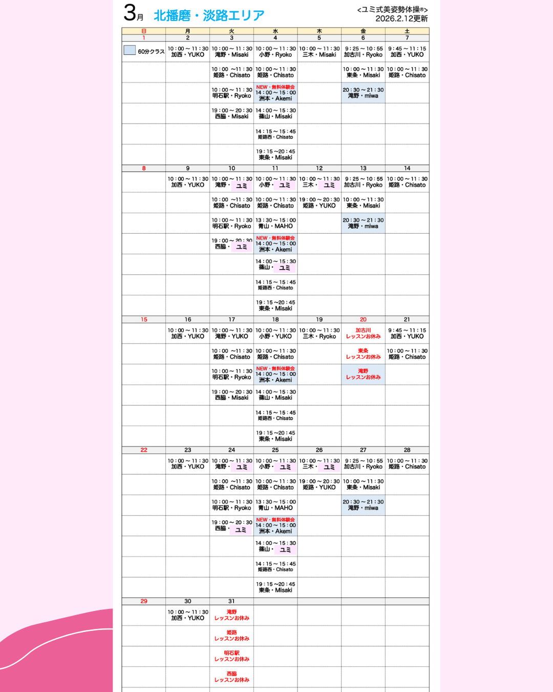 Trial lesson 体験レッスン プライバシーポリシーに同意のうえご利用ください ※申込締切期限:レッスン1週間前 ※は必須項目です。 ※教室名 : Studio 神戸 Studio 大阪・梅田 Studio 大阪・天王寺 Studio 大阪・京橋 Studio 大阪・都島 Studio 大阪・扇町 Studio 大阪・中崎町 Studio マナパーク都島 Studio 武庫之荘 Studio 西宮北口 Studio 西北KOKO Studio 京都 Studio 小野 Studio 滝野 Studio 三木 Studio 青山 Studio 西脇 Studio 加古川 Studio 加西 Studio 東条 Studio 篠山 Studio 姫路 Studio 姫路西 Studio 明石駅前 Studio 洲本 Studio 笠岡 Studio 井原 Studio 野田 Studio 三島 Studio 春日部 その他 ※体験レッスン希望日 : ↓ カレンダーから希望日をお選びください。 (枠内を押すとカレンダーが表示されます) ※お名前 : ※ふりがな : ※メールアドレス : ※電話番号 : - - ※住所 : 〒 - このレッスンをどちらでお知りになりましたか? 複数選択可 メルマガ ブログ Instagram Facebook その他(ご紹介の方は、ご紹介者のお名前をお聞かせください。) メッセージ :