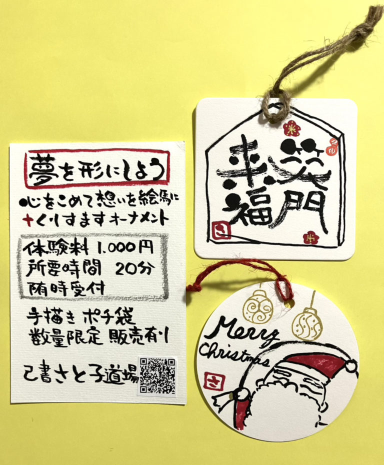 🖌️夢を形にしよう筆ペンで「絵馬」と、「オーナメント」を描こう💕体験料:1,000円所要時間:20分随時受付
